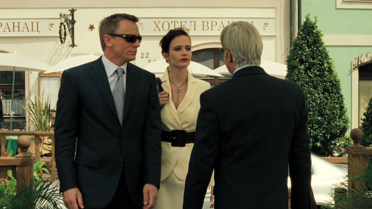 Daniel Craig with Char Blue suit; Casino Royale.